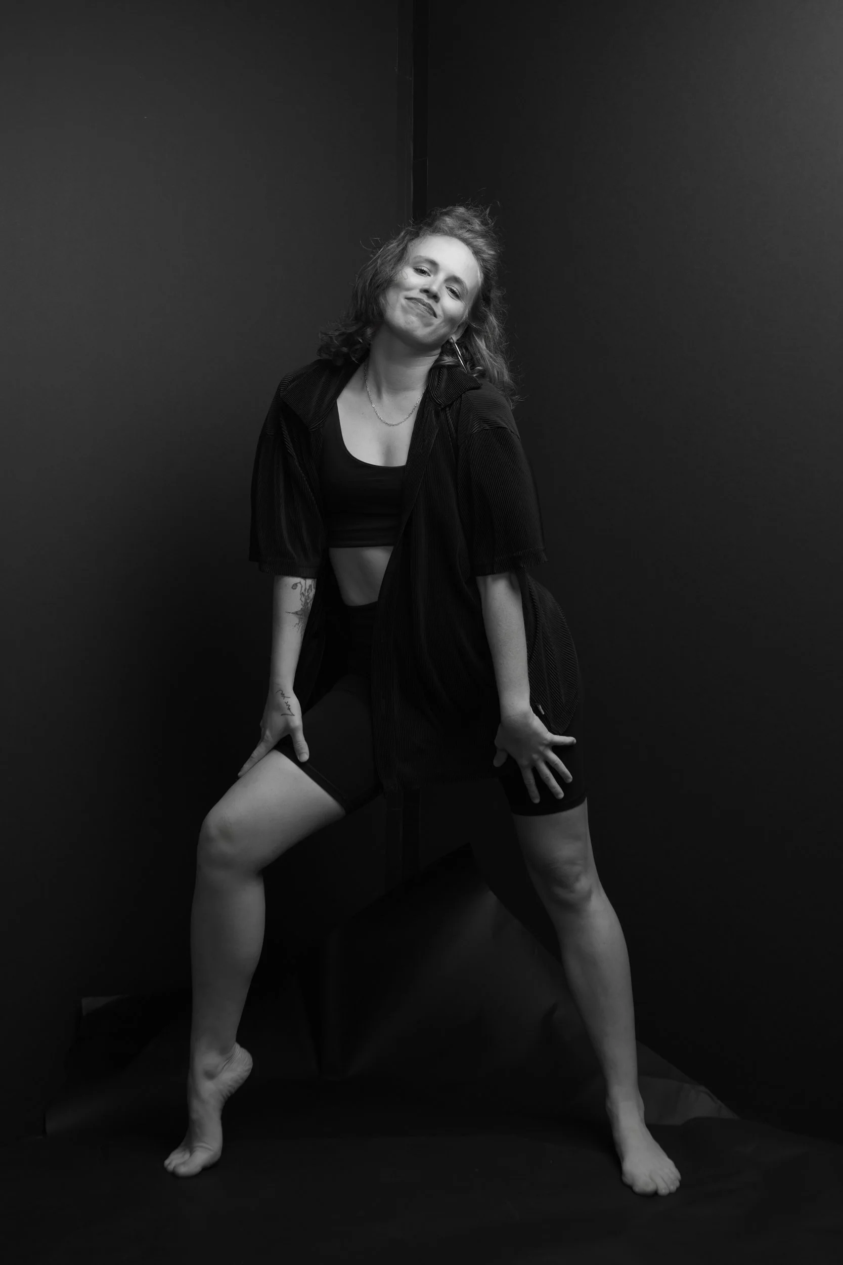 If I had to sum it up, my art tends to transmute challenge into chuckles. My choreography, more often than not, blends contemporary dance with satirical dance theatre. From the safety of the stage, I can say what many folks are thinking but are too scared to say out loud. If I could condense my work into two words? Joyful subversion. While my pieces often get audiences laughing. the hope is they end up thinking later on “Wait, was that about me?” Am I the problem?” or “Wow, she really didn’t hold back, that was bold and I love her for it.” As a queer person who came out on stage to an audience of over 800 people (including my parents), subtle has never really been my style. I think the stage is a powerful place for transformation to take place, and if audiences can see a bit of themselves in the work, they are more likely to be moved (pun intended).